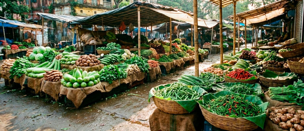 Scene – October, 2025, A busy vegetable market